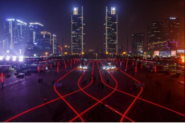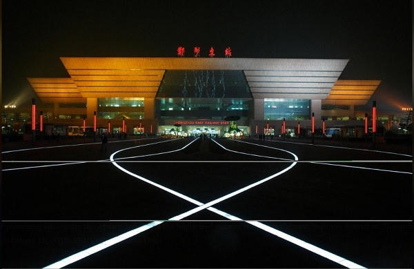 Đèn LED chiếu sáng quảng trường trước nhà ga đường sắt cao tốc ở khu kinh doanh mới của Trịnh Châu, Hà Nam