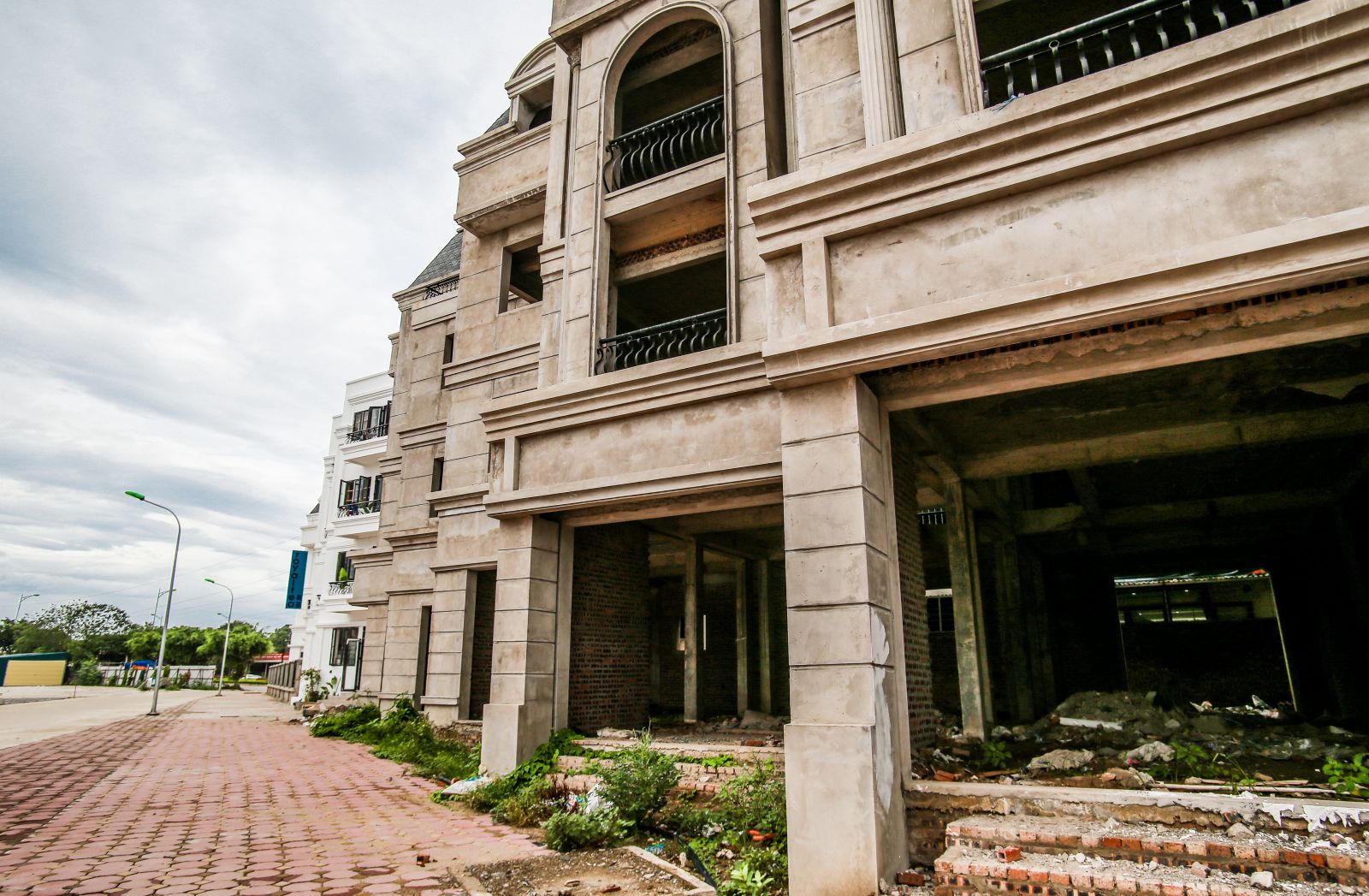 Cận cảnh biệt thự liền kề bỏ hoang, ngừng trệ thi công. Ảnh: Đỗ Linh.