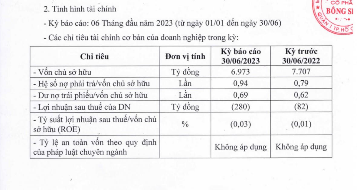 Tính tới giữa năm 2023, vốn chủ sở hữu giảm khoảng 700 tỷ đồng so với cùng kỳ, xuống còn dưới 7.000 tỷ đồng. Dư nợ trái phiếu/vốn chủ sở hữu là 0,69 lần, tương đương khoảng 4.811 tỷ đồng.