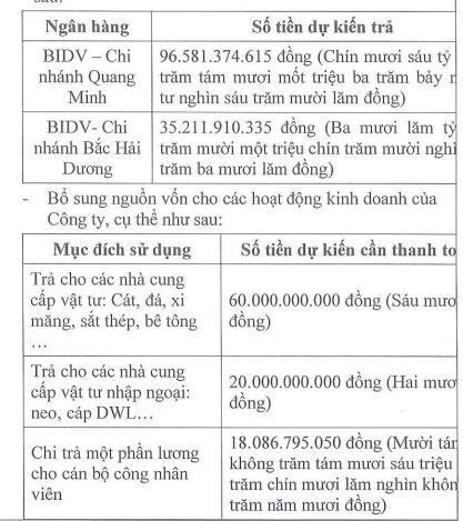 Toàn bộ số tiền thu được từ đợt chào bán sẽ được dùng để trả các khoản nợ của BOT Cầu Thái Hà. Trong đó, hơn 56 tỷ đồng được dùng để trả nợ vay tại VietinBank chi nhánh Hà Nam, hơn 93,8 tỷ đồng được dùng để trả nợ vay tại Công ty Tiến Đại Phát.
