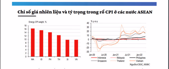 Theo các chuyên gia, Việt Nam nằm trong số ác quốc gia có giá nhiên liệu tăng cao, nhưng tỷ trọng trong rổ CPI lại ở mức trung bình trong tương quan so sánh giữa các nước ASEAN.