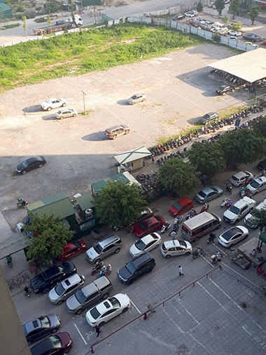 Loay hoay cả tiếng trước cánh cổng bãi trông giữ xe đóng kín, trong khi lòng đường, vỉa hè quanh khu chung cư chật kín xe, chị Nguyễn Thị Hoa cho hay, tòa nhà không có tầng hầm để ôtô nên gửi ở đây được hai năm với giá một triệu đồng một tháng. Chị không biết bãi giữ ôtô này không giấy phép, vì rất quy mô, sức chứa vài trăm xe, có hệ thống mái che, bình cứu hỏa gắn trên các cột.