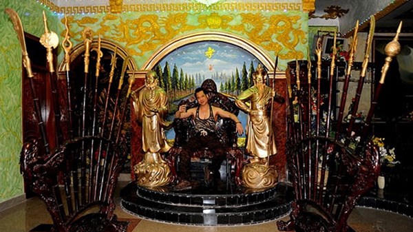 Phòng ngủ của Ngọc Sơn với bức tranh rồng nhũ vàng và nhiều đồ dùng quý giá