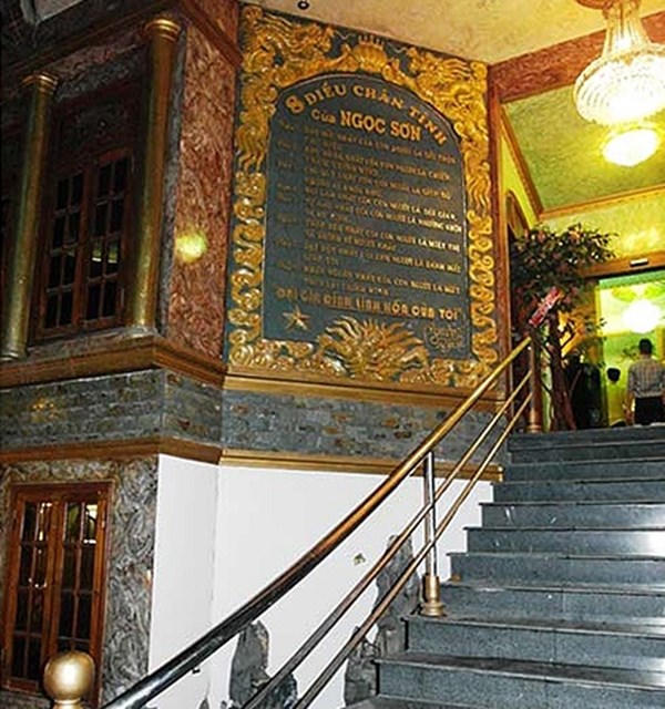 Điều bắt mắt nhất là những con rồng nhũ vàng trên tường. Cùng với nó là những hoa văn rất 'sến' theo dòng nhạc cùng tên đã giúp anh lên ngôi vua trong lòng khán giả bình dân trong suốt nhiều thập niên qua.
