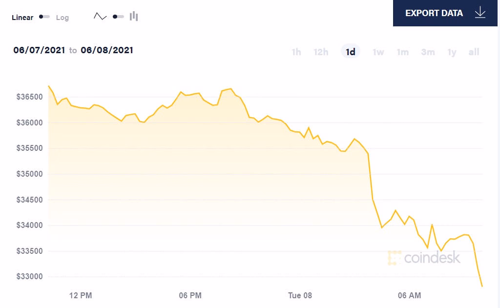 Sự sụt giảm này xảy ra khi giá Bitcoin dao động quanh mốc 36.000 USD, giảm 44% so với mức đỉnh kỷ lục 64.000 USD được thiết lập tháng 4 năm nay.