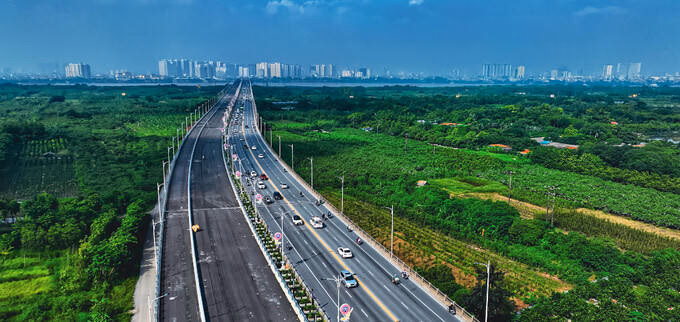 Trên cầu mới, xe ô tô từ nội thành lên sẽ đi 3 làn ở giữa.