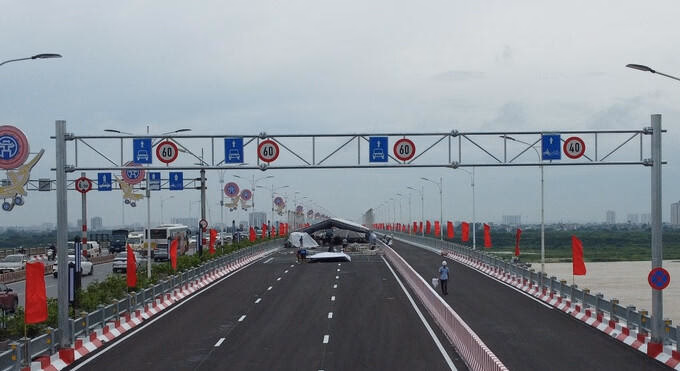 Tốc độ tối đa phương tiện ô tô được phép chạy trên cầu Vĩnh Tuy mới là 60km/h; xe máy tối đa là 40km/h.