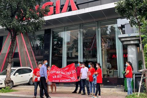 | Cư dân An Gia Star (phường Tân Tạo, quận Bình Tân, TP.HCM) đến trụ sở Công ty An Gia đòi sổ hồng vào năm 2020. Ảnh: VietNamNet |