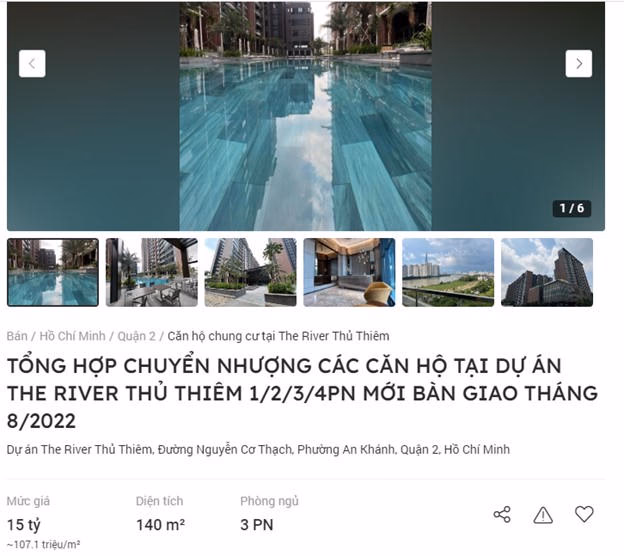 Khảo sát thực tế trên chuyên trang Batdongsan.com.vn cho thấy, các căn hộ tại dự án The River Thủ Thiêm, Đường Nguyễn Cơ Thạch, Phường An Khánh, Quận 2, Hồ Chí Minh mới đươc bàn giao vào tháng 8/2022 đang được rao bán lần lượt như sau: