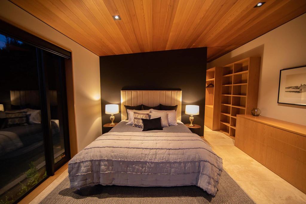 Khung cảnh độc nhất vô nhị của căn biệt thự được tận dụng tối đa cho các không gian khác nhau. Từ 3 phòng ngủ của ngôi nhà đều có thể nhìn ra hồ Wanaka hoặc núi Alps. |