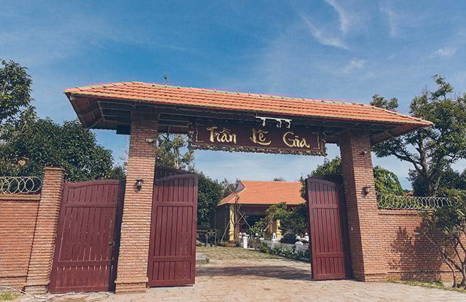 Biệt phủ kiêm đền thờ hai họ Trần, Lê được thiết kế với kiến trúc thuần Việt với các tông màu đỏ, trắng làm chủ đạo và được bao bởi nhiều cây xanh. Các bức tường được xây dựng thủ công bằng gạch đỏ mỹ thuật, các chi tiết trang trí mang đậm nét cổ xưa, mang đến không gian trang nghiêm, truyền thống.