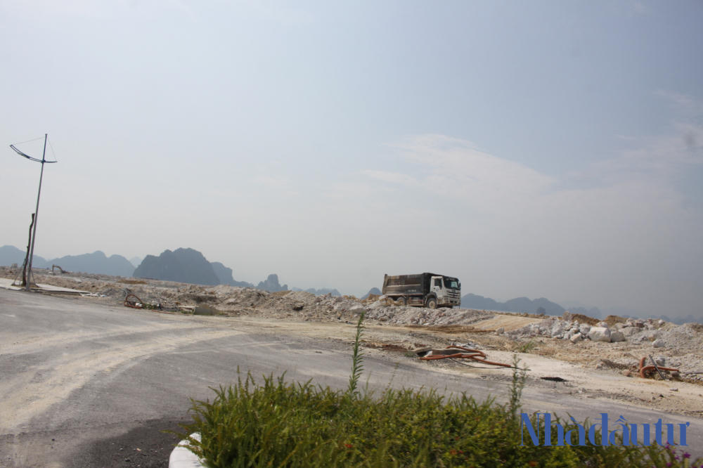 Tại công trường,chủ đầu tư đang tiến hành thi công san lấp mặt bằng và đầu tư xây dựng hạ tầng, xe tải chở đất từ dãy núi gần đó xuống lấp biển hoạt động liên tục cả ngày lẫn đêm.