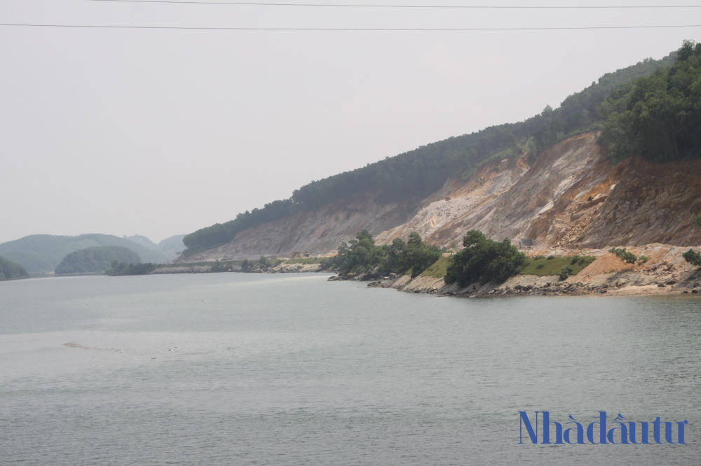 Dãy núi gần đó đang được đào để lấy đất san lấp mặt bằng khu đô thị, bất chấp hành lang an toàn của lưới điện