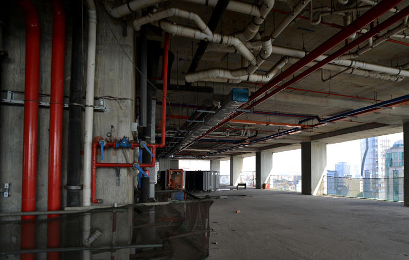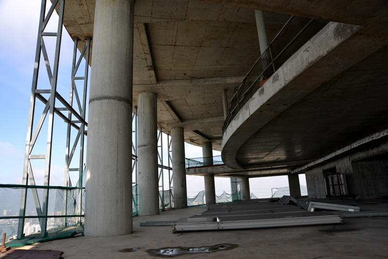 | Phần cứng của tòa nhà đã được xây xong, chờ ngày hoàn thiện. Theo thiết kế đây là tòa văn phòng và căn hộ hạng A, giá bán lên tới 7.000 USD/m2 |