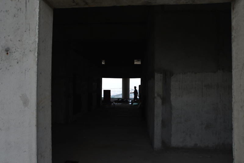 | Công trình hoang lạnh đã nhiều năm, thỉnh thoảng có bóng công nhân lên kiểm tra |
