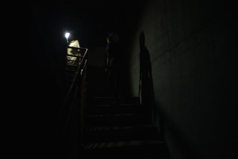 | Cầu thang máy chở công nhân đã ngừng hoạt động vì bị cắt điện do chưa đóng tiền |