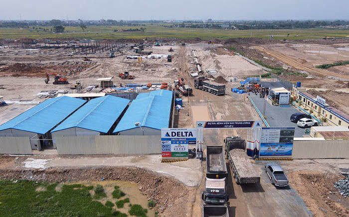 Cận cảnh công trường Bệnh viện Nhi Trung ương cơ sở 2 ở ngoại thành Hà Nội