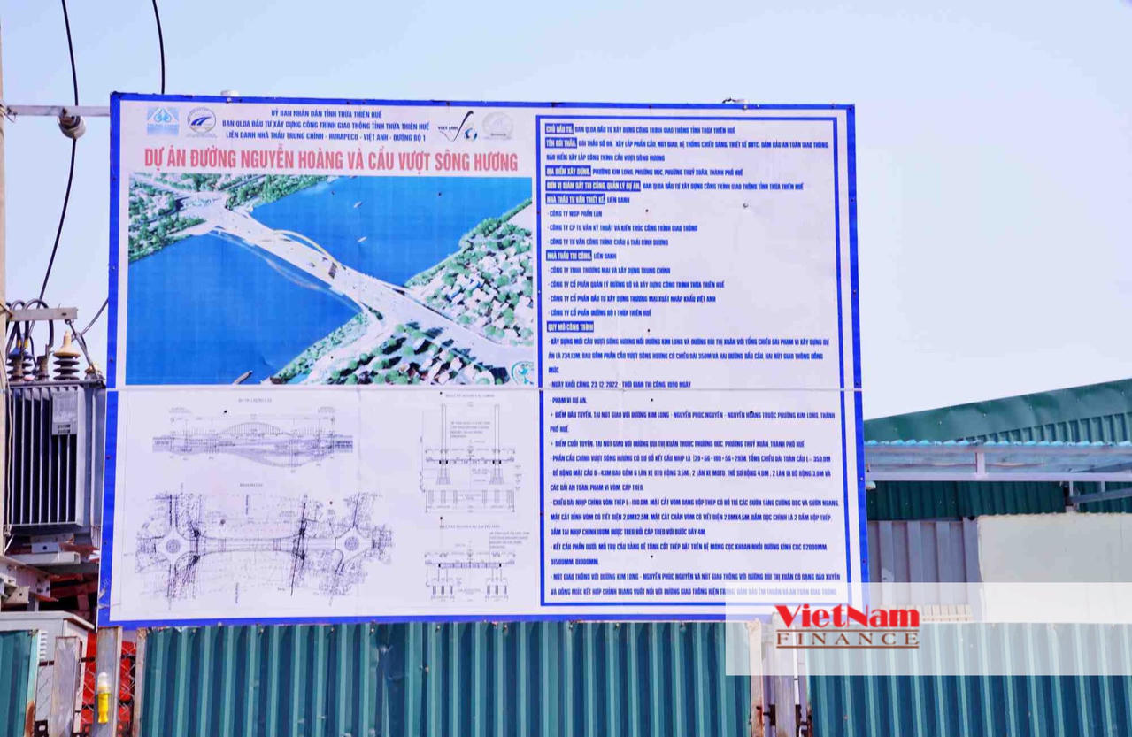 Dự án cầu vượt qua sông Hương và đường Nguyễn Hoàng thuộc tuyến đường vành đai 3 - là trục giao thông chính, xuyên tâm vào thành phố, kết nối liên thông 2 đô thị vệ tinh là thị xã Hương Trà - Hương Thủy với TP. Huế.Dự án có tổng mức đầu tư hơn 2.281 tỷ đồng, trong đó giai đoạn I hơn 1.855 tỷ đồng. Dự án do Ban QLDA Đầu tư xây dựng công trình giao thông tỉnh Thừa Thiên Huế làm chủ đầu tư.Quy mô dự án gồm cầu vượt sông Hương dài 350m và đường Nguyễn Hoàng mở rộng (nhánh đường vào cầu vượt phía bờ bắc sông Hương) dài 1,08km.Trong đó, cầu vượt bắc qua sông Hương được thiết kế là cầu vòm thép với 5 nhịp dầm, mặt cắt ngang của cầu là 43m, làn đường đi bộ rộng 3m. Điểm đầu tại khu vực nút giao đường Kim Long - Nguyễn Phúc Nguyên - Nguyễn Hoàng và điểm cuối tại khu vực nút giao đường Bùi Thị Xuân.Cầu có kết cấu bằng bê tông cốt thép, khả năng thông thuyền tối thiểu rộng 30m, cao 6m. Trên mặt bằng, các lề bộ hành được rẽ nhánh xuống công viên hai bên bờ sông Hương bằng 4 cầu nhánh cong.Theo ghi nhận của VietnamFinace, sau hơn 1 năm thi công, cây cầu đang dần thành hình trên sông Hương. Đây là cây cầu thứ 5 bắc qua con sông này của thành phố Huế. 4 cây cầu trước đó gồm: cầu Chợ Dinh, cầu Trường Tiền, cầu Phú Xuân và cầu Dã Viên.Bãi tập kết vật liệu xây dựng nằm ở phía bắc cầu vượt sông Hương.Theo kế hoạch thực hiện, dự kiến đến 15/10/2024, dự án sẽ được hoàn thành mối nối mặt cầu và cơ bản hoàn thành phần cầu vào cuối năm 2024.Khu vực đi vào dự án nằm trên trục đường Kim Long - Nguyễn Phúc Nguyên.Còn tuyến đường Nguyễn Hoàng mở rộng sẽ được đầu tư với quy mô mặt cắt ngang tuyến là 43m với 6 làn xe ô tô, dải phân cách giữa rộng 5m, vỉa hè mỗi bên rộng 8,5m. Đây sẽ là đường phố chính đô thị, vận tốc thiết kế là 60km/giờ.Nhà thầu thi công công trình là liên danh Công ty TNHH Thương mại và xây dựng Trung Chính - Công ty Cổ phần Quản lý đường bộ và xây dựng công trình Thừa Thiên Huế - Công ty cổ phần Đầu tư xây dựng, thương mại, xuất nhập khẩu Việt Anh- Công ty cổ phần Đường bộ I Thừa Thiên Huế.Trong đó, Công ty TNHH Thương mại và xây dựng Trung Chính là Ban điều hành dự án.