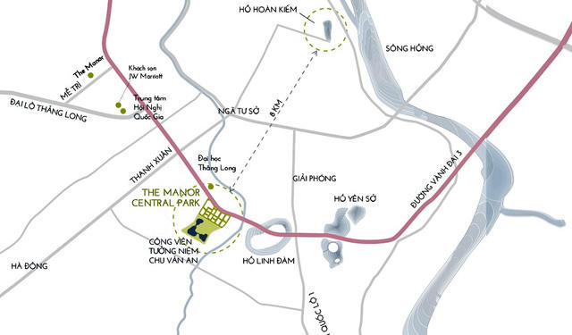 Phía Bắc của The Manor Central Park trải dài hơn 1 km theo đường Nguyễn Xiển, phía Nam là Công viên Chu Văn An, phía Tây là Đại lộ Chu Văn An và phía Đông tiếp giáp với Khu đô thị Bắc Linh Đàm.