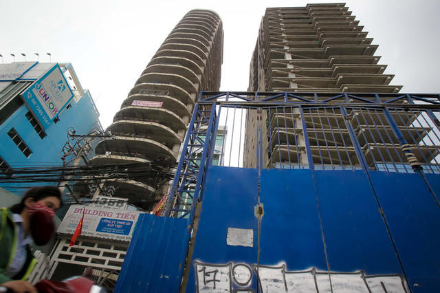Cao ốc văn phòng V-Ikon đã xây được phần thô nhưng chủ đầu tư không đủ khả năng để hoàn thiện. Ảnh: Hoàng Triều