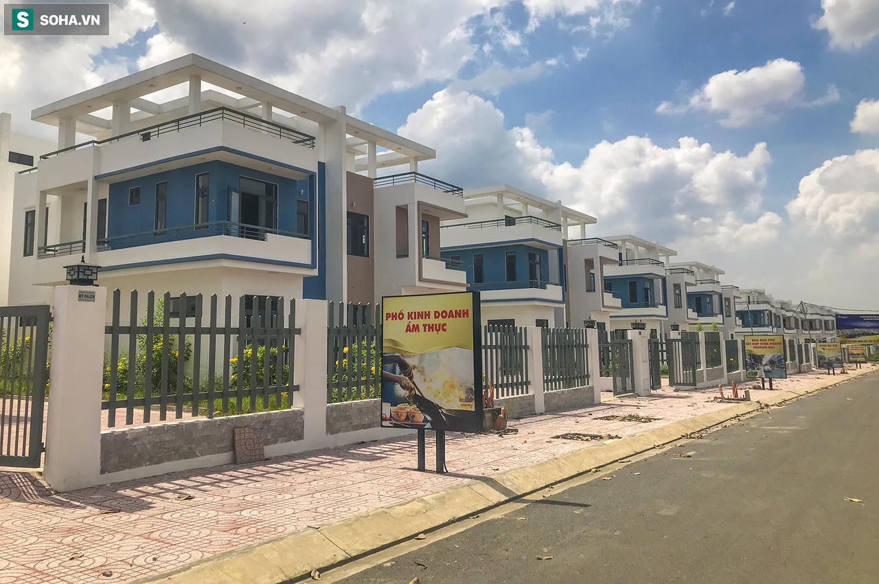 Khu phố kinh doanh ẩm thực được xây dựng với hàng trăm căn nhà liền kề, tuy nhiên vẫn heo hút, chưa có bóng người ở.