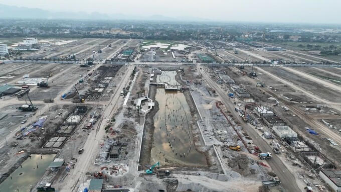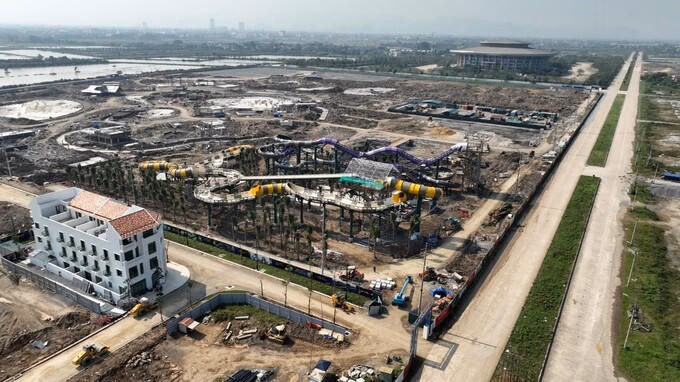 Nhìn từ trên cao, công viên lễ hội với trục đại lộ rộng 150m đã hiện rõ hình hài, ước tính hoàn thành tới 85% khối lượng công việc. Dự kiến toàn bộ trục lễ hội, show nhạc nước sẽ hoàn thành cuối năm 2024, sẵn sàng vận hành phục vụ các chương trình chào đón năm mới Ất Tỵ 2025.