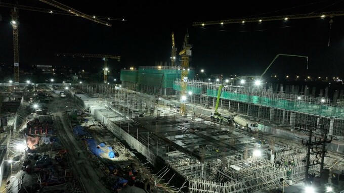 Anh Nguyễn Kim Sinh, Chỉ huy trưởng nhà thầu Coteccons tại khu căn hộ cao tầng khẳng định: “Toàn công trường nỗ lực thi công 8 tiếng ca ngày và 6 tiếng ca đêm, có những hạng mục thi công xuyên đêm, nhằm đưa dự án về đích đúng tiến độ”.