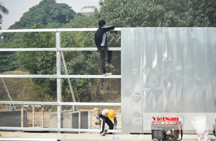 Công nhân đang thi công hàng rào an ninh