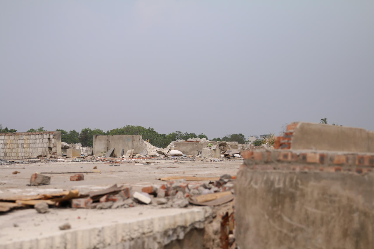 Một khu vực đã hoàn thành công tác giải phóng mặt bằng, đang tiến hành thi công xây dựng.