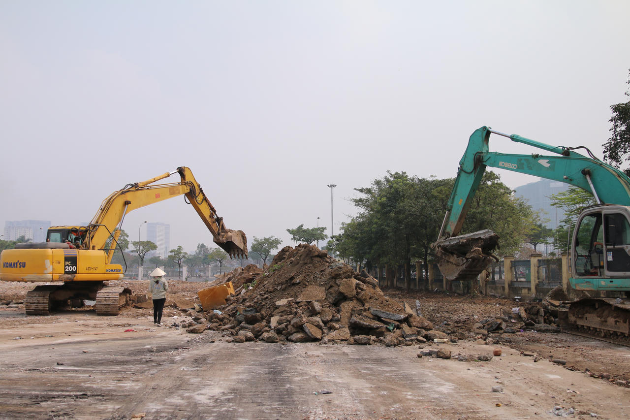 Khu vực xung quanh Khu Liên hợp thể thao Quốc gia Mỹ Đình (Hà Nội) đang được gấp rút giải phóng mặt bằng, chuẩn bị thi công, xây dựng đường đua F1.