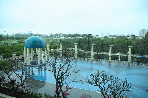 Điều lý tưởng của căn hộ, từ phòng ngủ có thể nhìn ra bể bơi. Không gian rất đẹp và lãng mạn.