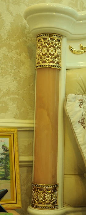 Trắng và vàng là những màu chủ đạo của căn nhà. Bộ sofa màu vàng nhạt cùng các họa tiết được trang trí khá tỉ mẩn tạo nên sự sang trọng. Theo tiết lộ của gia chủ, toàn bộ nội thất được đặt từ Hong Kong chuyển về.