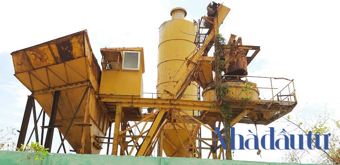 Đứng bên ngoài dự án ta có thể dễ dàng những thấy những máy móc đã hư hỏng , cũng như biển quảng cáo dự án đã trơ khung, han rỉ theo thời gian. Ảnh: Chu Ký