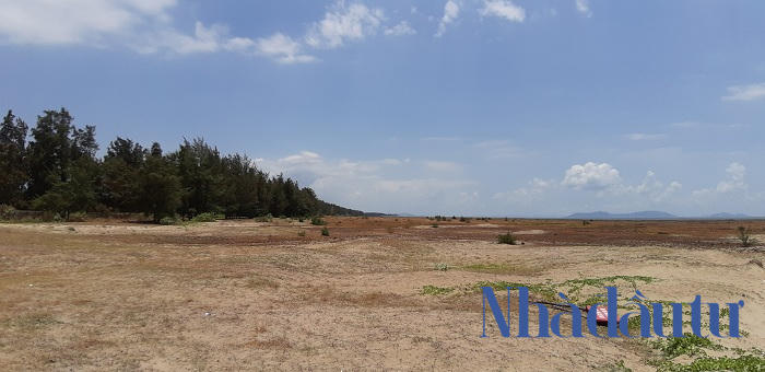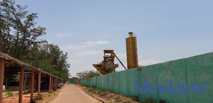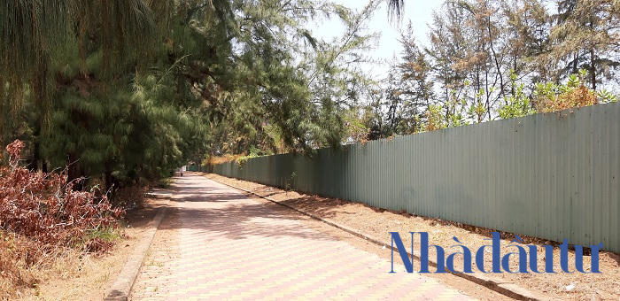 Bên trong dự án hiện vẫn chỉ là một bãi đất hoang rộng thênh thang, để cỏ dại mọc, cùng hàng phi lao phía trước tường chắn và chưa hề có một dấu hiệu nào sẽ thi công trở lại. Ảnh: Chu Ký