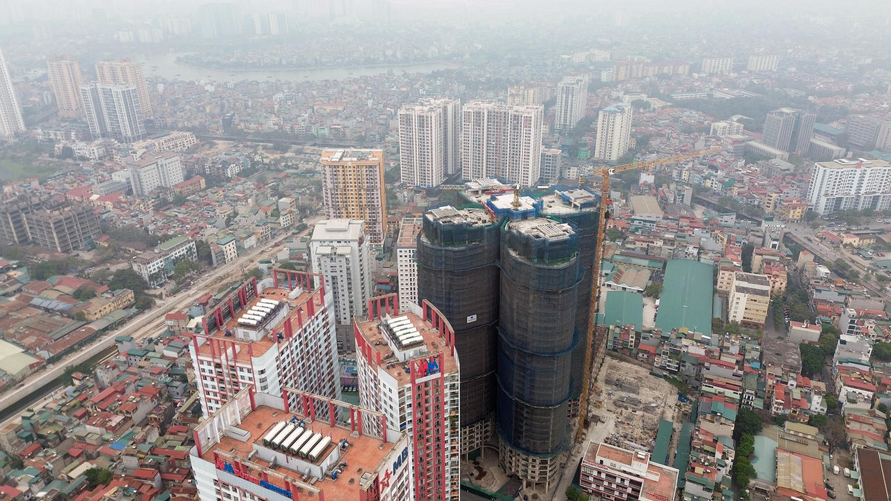Toà cao ốc Skyview Plaza nằm trong tổ hợp Imperial Plaza 360 Giải Phóng đã cất nóc sau 5 năm đắp chiếu.