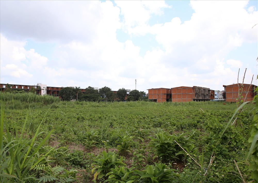 Còn nhiều lô đất trống, cỏ dại hai bên bò ra đường. Ảnh: H.Thơ
