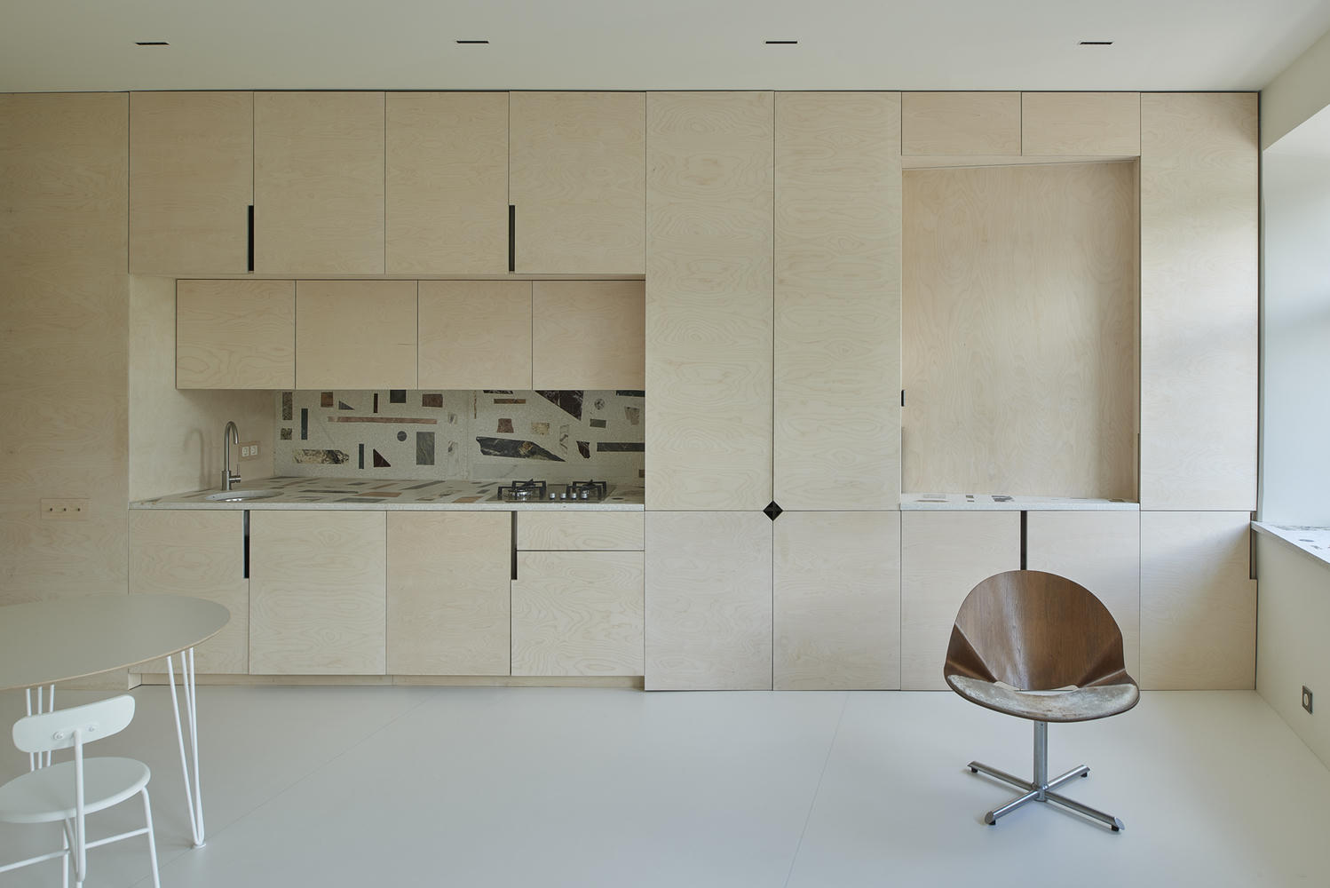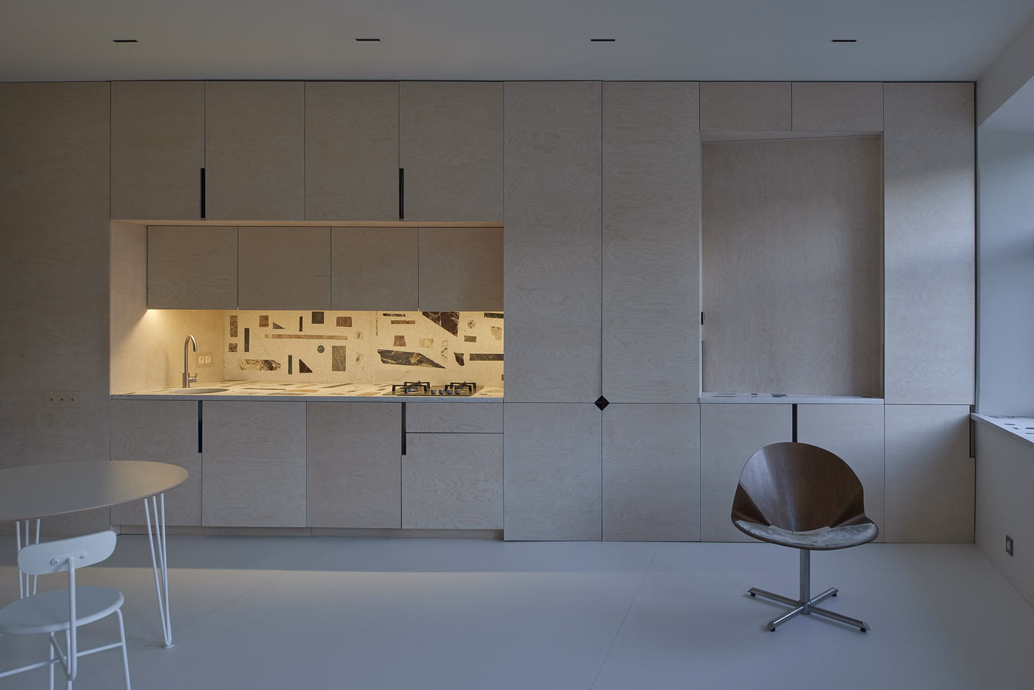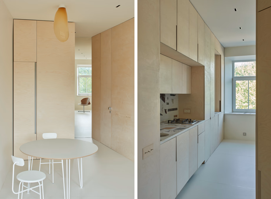 Trong một không gian sống tương đối nhỏ, các kiến trúc sư đã tìm kiếm điều ấn tượng từ ánh sáng đến sự rộng rãi để tạo ra một bầu không khí yên tĩnh, nhẹ nhàng và quan tâm. Khi bước vào, bạn thấy mình được đẩy ra không gian sáng và rộng mở của toàn bộ căn hộ.