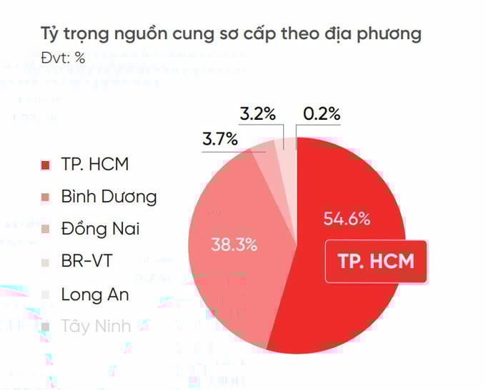 TP.HCM và Bình Dương tiếp tục dẫn đầu, chiếm gần 93% tổng nguồn cung sơ cấp toàn thị trường.
