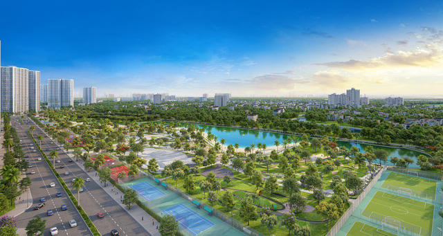 Đây cũng là dự án “thành phố thể thao” năng động đầu tiên tại Việt Nam với hệ thống công viên thể thao quy mô hang đầu Đông Nam Á lên đến hơn 1.200 máy tập, hàng chục bể bơi, hàng tram sân bóng đá, sân tennis, bóng chuyền, cầu lông…