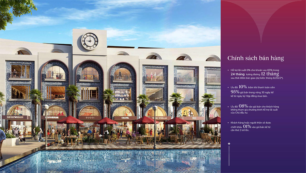 Ngoài ra, chủ đầu tư còn hỗ trợ lãi suất 0% trên 65% giá trị shophouse trong vòng 24 tháng tương đương 12 tháng sau thời điểm bàn giao, thanh toán thảnh thơi 20% đến khi nhận bàn giao vào tháng 6/2022....