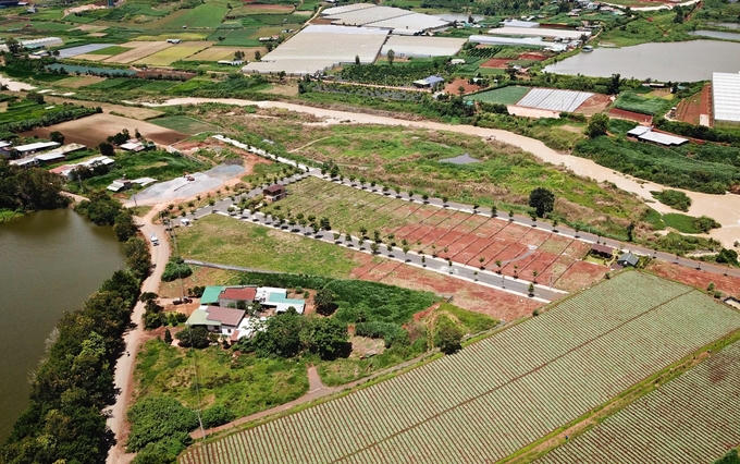 Toàn bộ khu đất được san gạt bằng phẳng, ba đường nhựa đã xây dựng xong, dài nhất là đoạn dọc sông Đa Nhim.