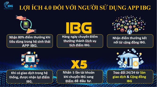 Người môi giới của ứng dụng IBG cho biết: “IBG ra đời đem đến giải pháp công nghệ 4.0 tối ưu nhất hiện nay. Đối với người tiêu dùng sẽ được hoàn lại 80% giá trị tiêu dùng, còn doanh nghiệp được quảng cáo sản phẩm miễn phí trên ứng dụng. Chỉ cần bỏ tiền đầu tư vào IBG, sau 3 tháng sẽ hoàn vốn, sau đó có thể nhận được tiền lãi gấp 5 lần số tiền đầu tư”.