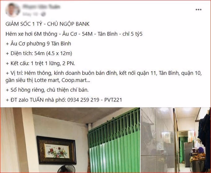Một căn hộ diện tích hơn 70m2 nằm trên tầng 15 của một tòa chung cư tại quận 12, TP.HCM được “chính chủ” đăng tin bán cắt lỗ 400 triệu đồng để xoay tiền trả nợ ngân hàng, căn hộ hiện đang được cho thuê với giá 9 triệu đồng/tháng. Theo thông tin từ chính chủ, căn hộ được mua từ năm 2019 với mục đích đầu tư. Thời điểm mua, căn hộ có giá 4 tỷ đồng, giờ bán lại với giá 3,6 tỷ đồng, chịu lỗ 400 triệu. Thế nhưng, khảo sát giá bán thực tế tại khu vực xung quanh khu chung cư này, mức giá cũng chỉ tương đương với giá người chủ rao bán, tức không phải “cắt lỗ” như quảng cáo.