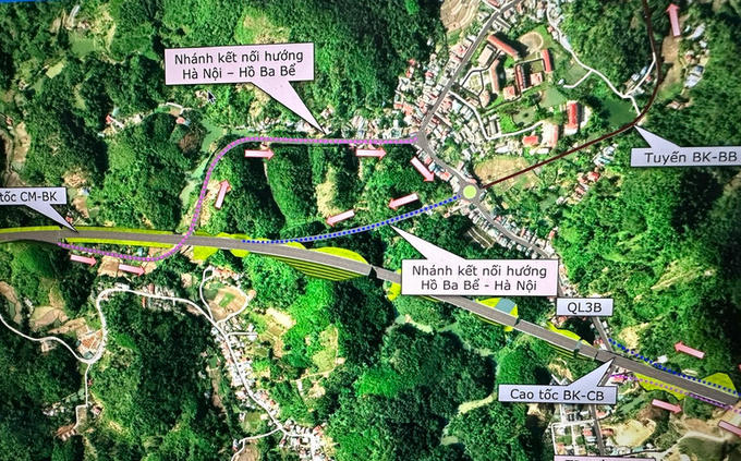 Ba phương án tuyến đã được đưa ra để lựa chọn phương án phù hợp nhất. Trong đó, một phương án bao gồm việc bố trí nhánh tách và nhập làn để kết nối với Quốc lộ 3B và tuyến Bắc Kạn - hồ Ba Bể. Phương án này sẽ tận dụng nhánh bên trái của tuyến, vốn là phần nền đường của cao tốc Chợ Mới - Bắc Kạn đã được đầu tư xây dựng trong một dự án riêng, đồng thời, xây dựng thêm một nhánh kết nối phía phải tuyến để kết nối với Quốc lộ 3B và tuyến Bắc Kạn - hồ Ba Bể.