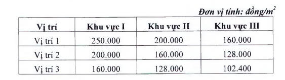 Giá đất nông nghiệp được phân thành ba khu vực, cụ thể như sau: