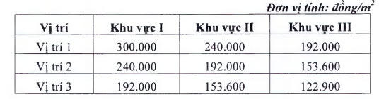 Giá đất trong Khu Công nghệ cao được tính theo mặt bằng giá đất ở, sau đó quy định bảng giá các loại đất trong Khu Công nghệ cao như sau: