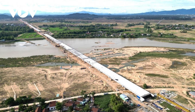 Các hạng mục của cầu Sông Côn hiện đang được đẩy nhanh tiến độ. Ảnh: VOV.vn