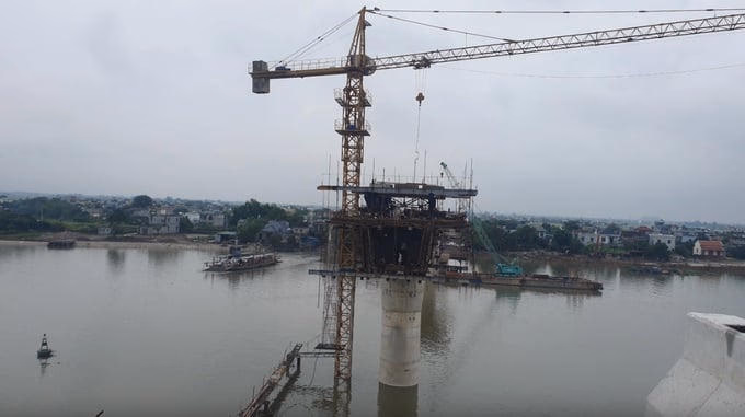 Cầu vượt sông kết thúc 'sứ mệnh' của bến phà hàng chục năm tuổi ở Nam Định dần thành hình, 'thẳng tiến' đến ngày hợp long