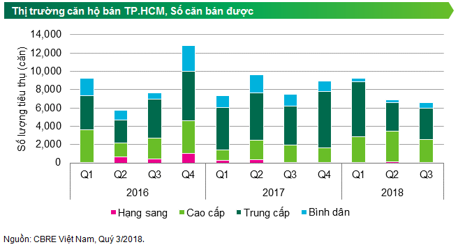 Ngay từ đầu năm, CBRE đã cho rằng thị trường sẽ tiêu thụ khoảng 37.000 căn hộ trong năm nay. Tuy nhiên trong 9 tháng, chỉ 17.000 căn hộ đã được bán ra. Còn lại, 20.000 căn hộ sẽ là mục tiêu của quý IV.