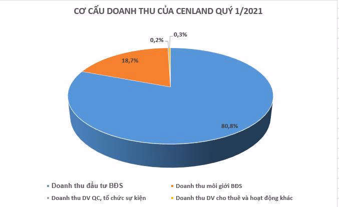 Nhìn vào cơ cấu doanh thu của Cenland, có thể thấy trong quý này doanh thu từ hoạt động đầu tư BĐS tăng đột biến, gấp nhiều lần doanh thu mảng môi giới vốn là "trụ cột" của doanh nghiệp trước đó.